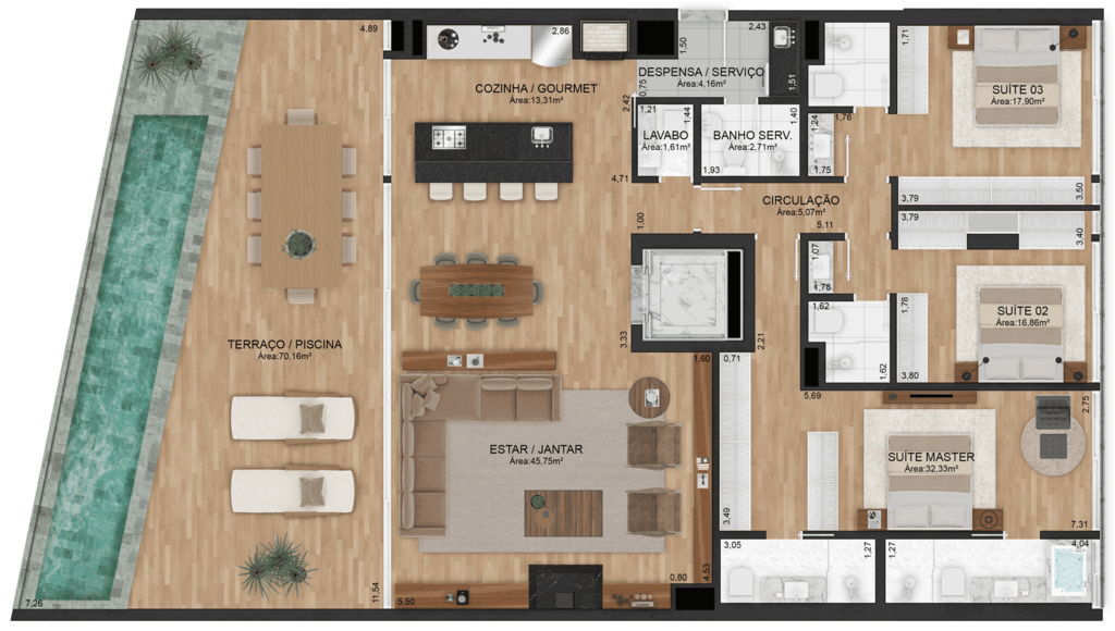 A vida pede um novo capítulo. E de agora em diante, todo o resto pode esperar: São 16 apartamentos exclusivos, com plantas e características únicas dentro de uma construção dinâmica e homogênea. Todas as unidades possuem terraço com piscina particular. As unidades garden possuem jardim privativo, com projeto do renomado paisagista Alex Hanazaki. As esquadrias piso-teto integram interior e exterior, criando espaços onde é possível viver sem pressa. No térreo, as áreas comuns, próximas à rua, favorecem uma conexão verdadeira com a natureza e com o espaço urbano graças aos charmosos painéis perfurados em aço corten. Localizado na parte alta do bairro Três Figueiras, junto ao Colégio Farroupilha, Unisinos, Hospital Mãe de Deus e da Carlos Gomes. Este novo capítulo é o símbolo de um novo momento na sua história e na história do bairro Três Figueiras. Preço e disponibilidade do imóvel sujeitos a alteração sem aviso prévio.